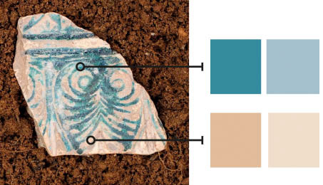 A symbol was created based on the stylisation of the Islamic tile design, as well as its colours. The shape was altered to resemble a heart (to refer to the community's involvement) and the design lines were made irregular (to highlight the historical/archaeological character of the project).