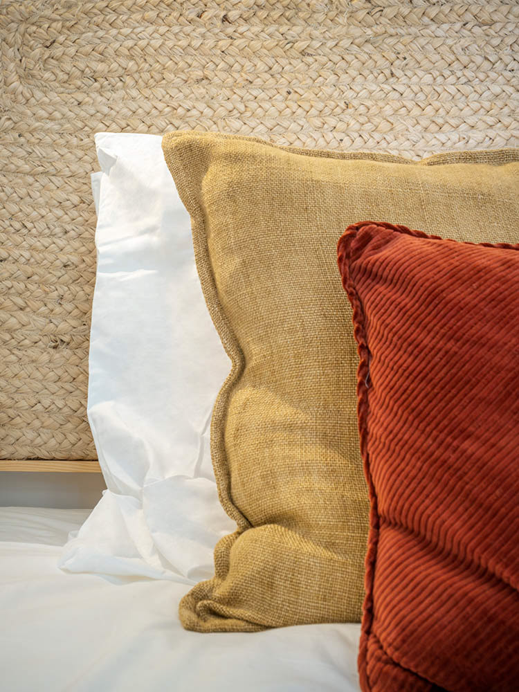 Photographs of the Aivado Hotel’s model room. In addition to general views of the space, details were captured that highlight the natural materials used, reflecting a direct connection with the rural surroundings in which the hotel is located.
