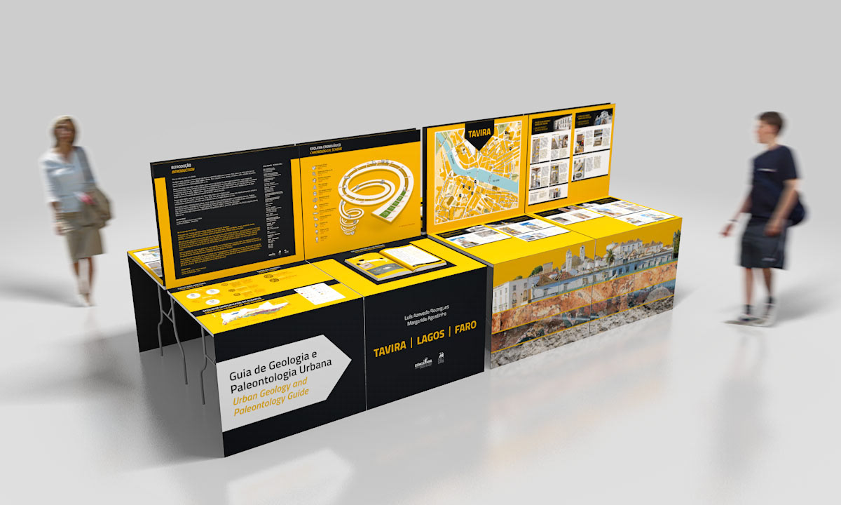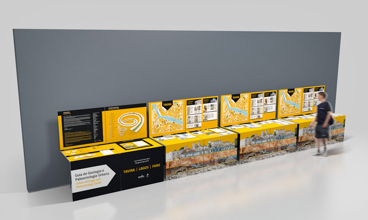 3D simulation of a concept for a portable exhibition based on the Algarve Geological Guides (see graphic design portfolio).