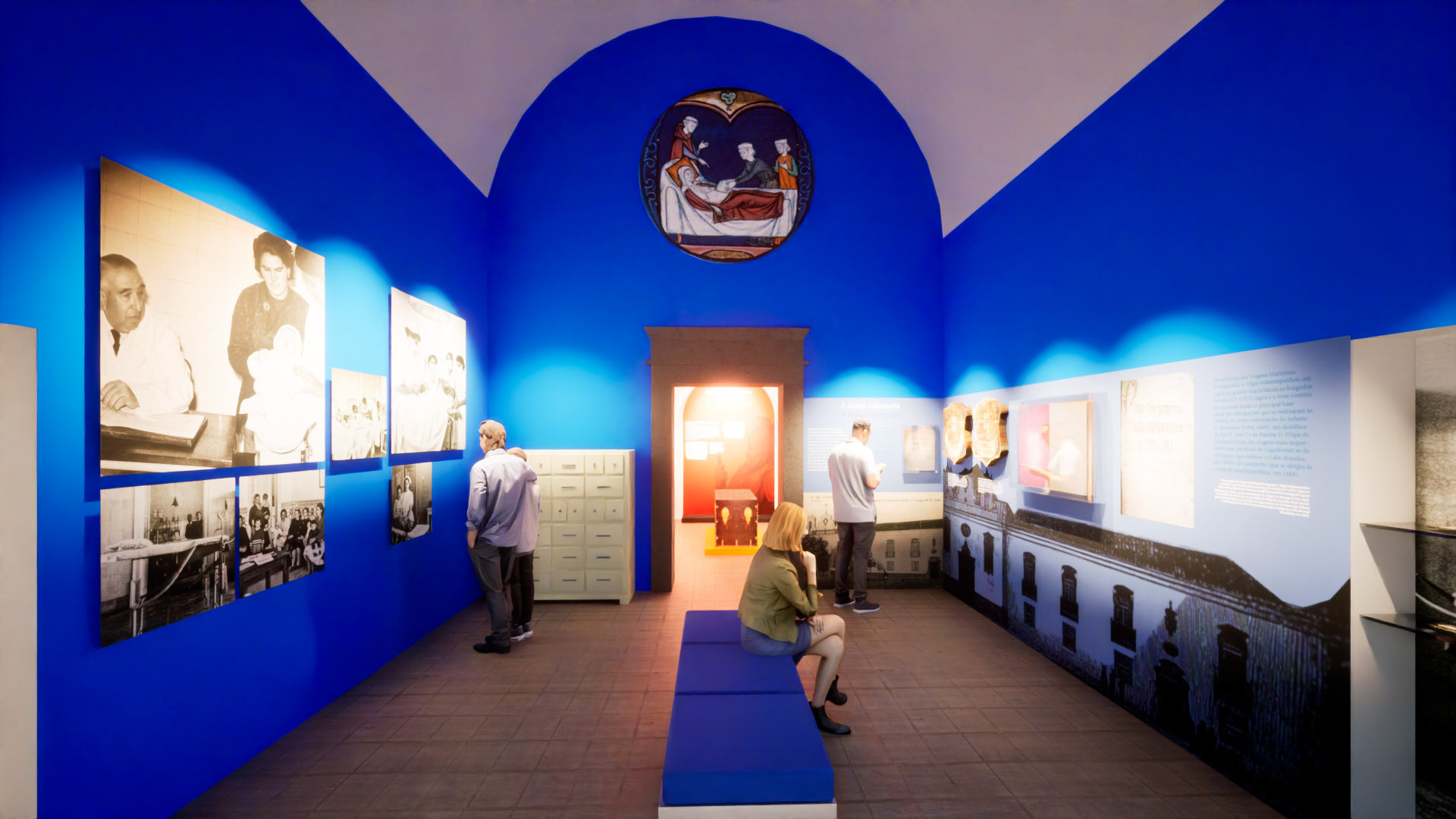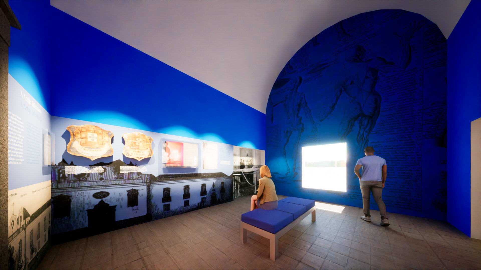3D simulation of the museography design projected by Nerve Design for the Espírito Santo Hospital, Lagos, Algarve, Portugal.