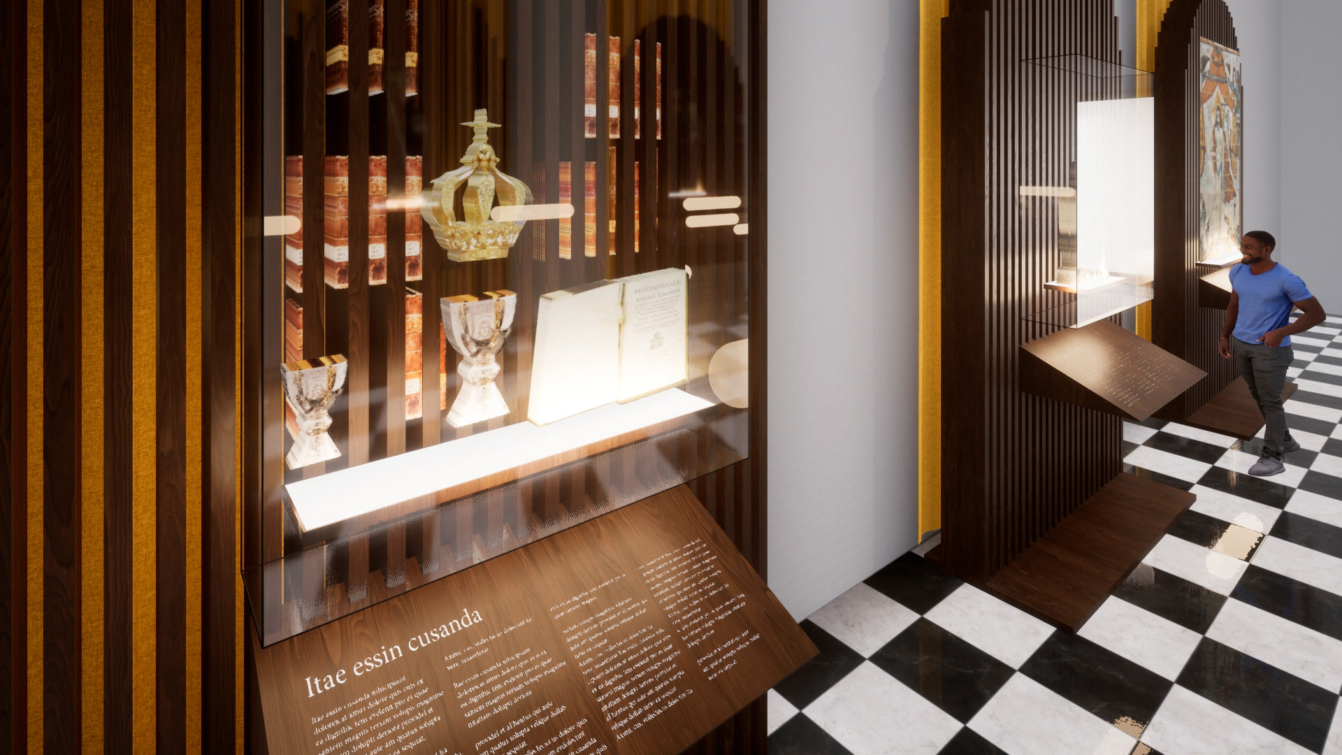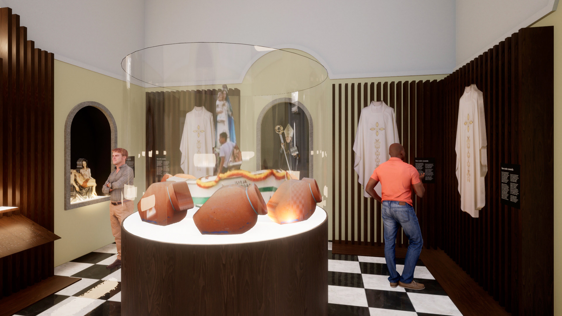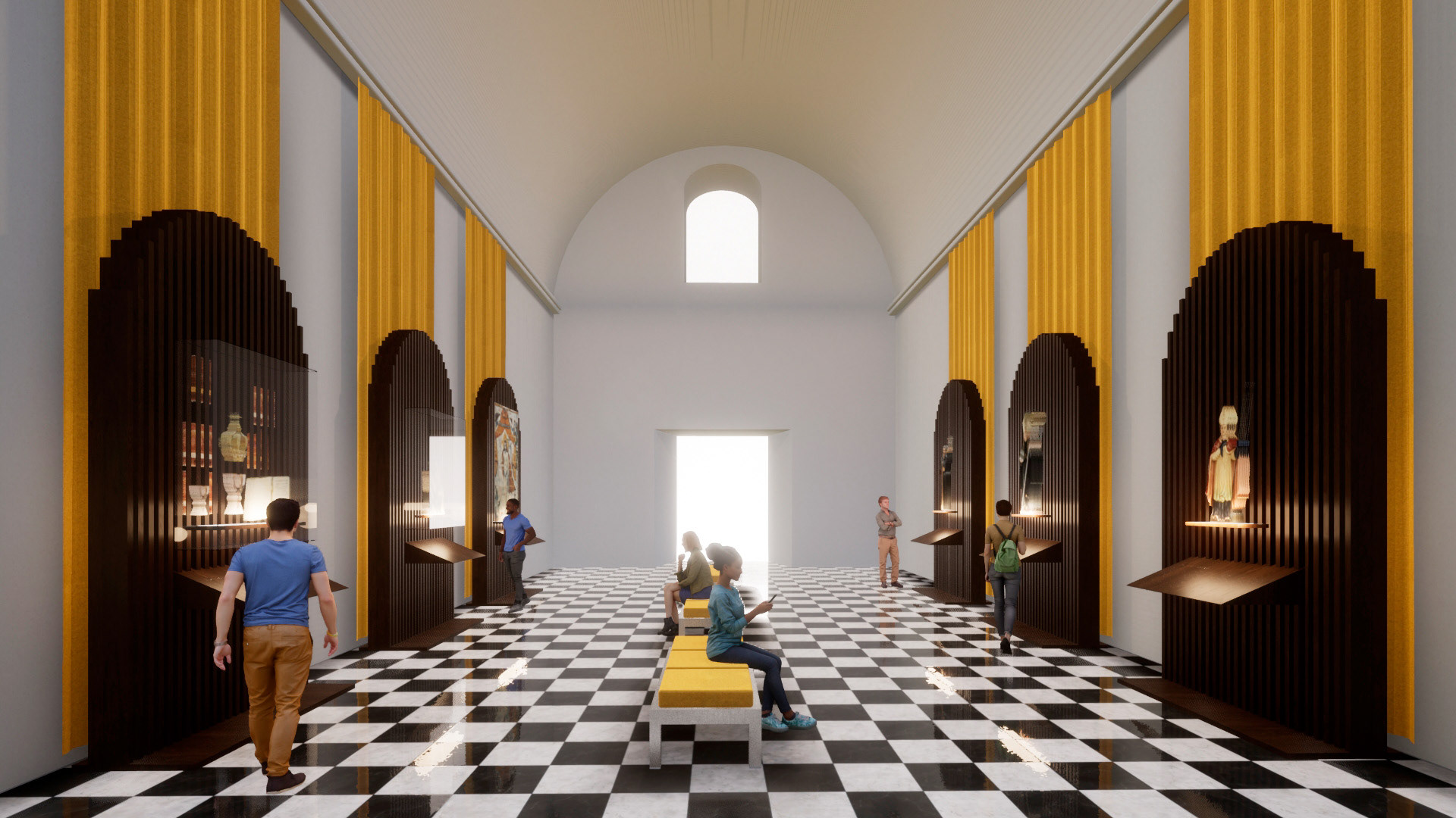 Simulação 3D de design de espaço projetado pela Nerve Design para a Paróquia de Albufeira, Algarve.
