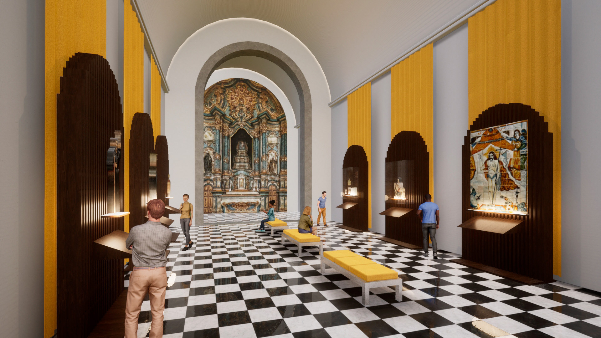 3D simulation of the interior design projected by Nerve Design for the Paróquia de Albufeira, Algarve, Portugal.