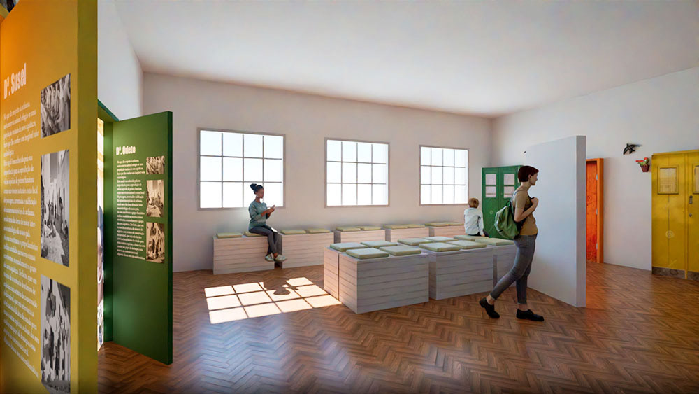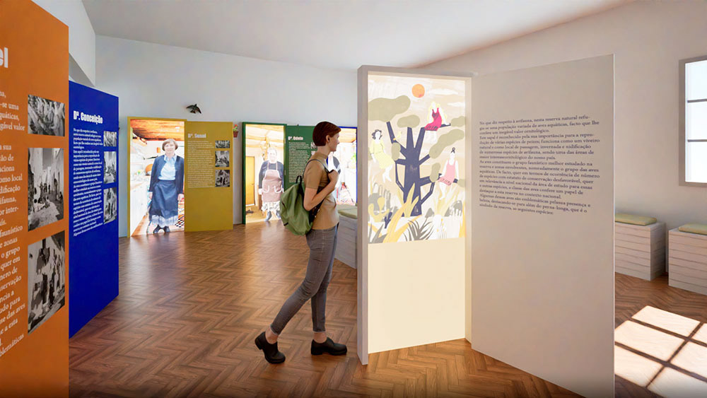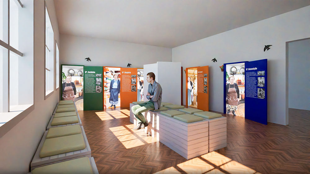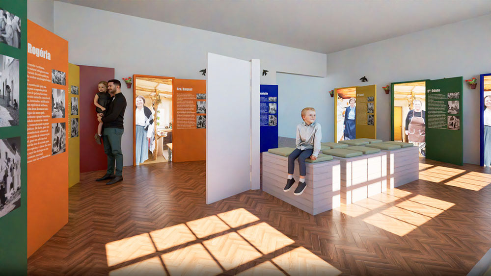 Simulação 3D do projeto de museografia idealizado pela Nerve Design para uma exposição em Santa Rita, Algarve, Portugal.