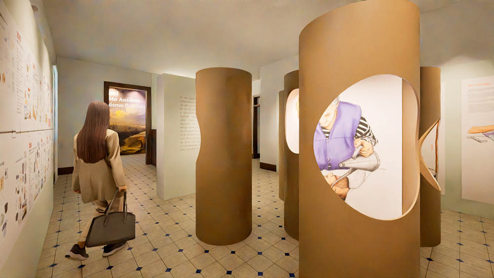 3D simulation of a new museum at Vila Real de Santo António, Portugal. The simulation was made at scale, in realistic renderings, to better allow the evaluation of Nerve Design's projects in the areas of the museography and planning of the space before physical development.
