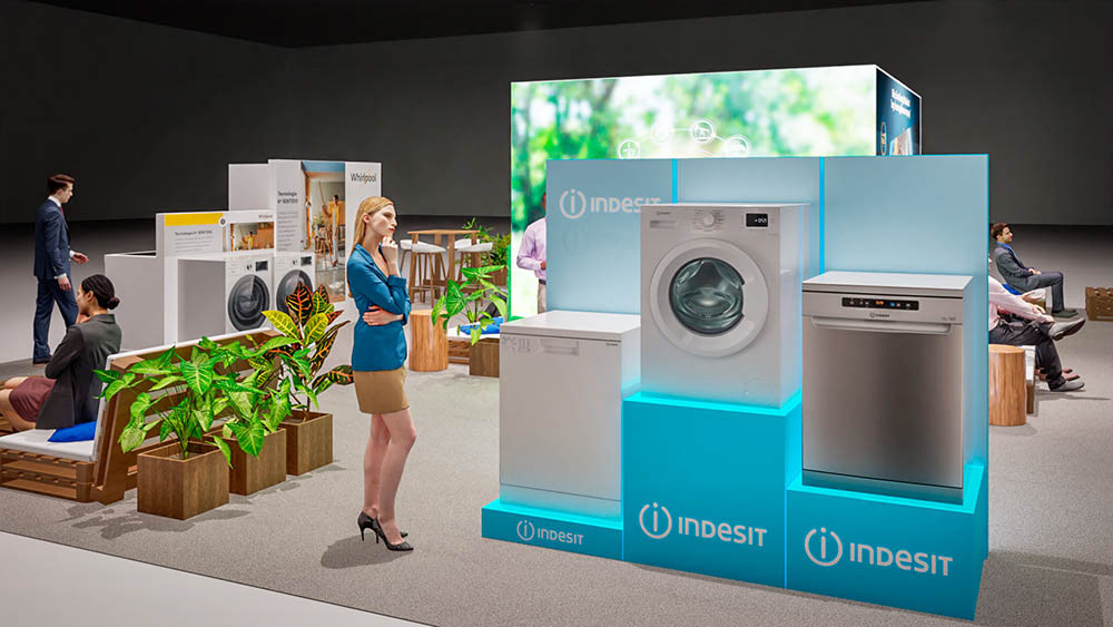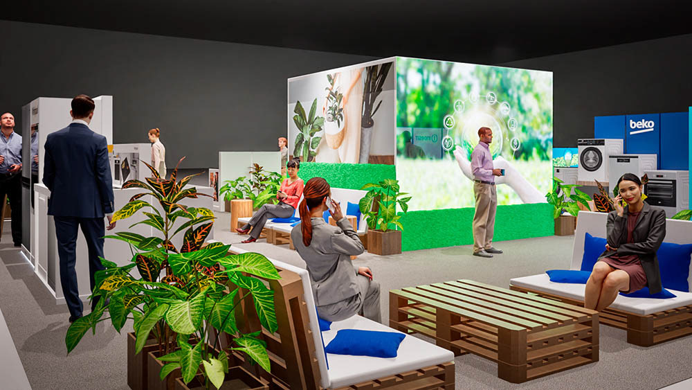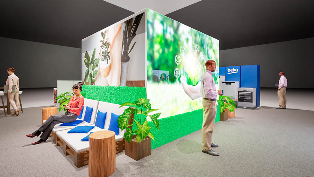 A 3D simulation of the Beko product showcase.
