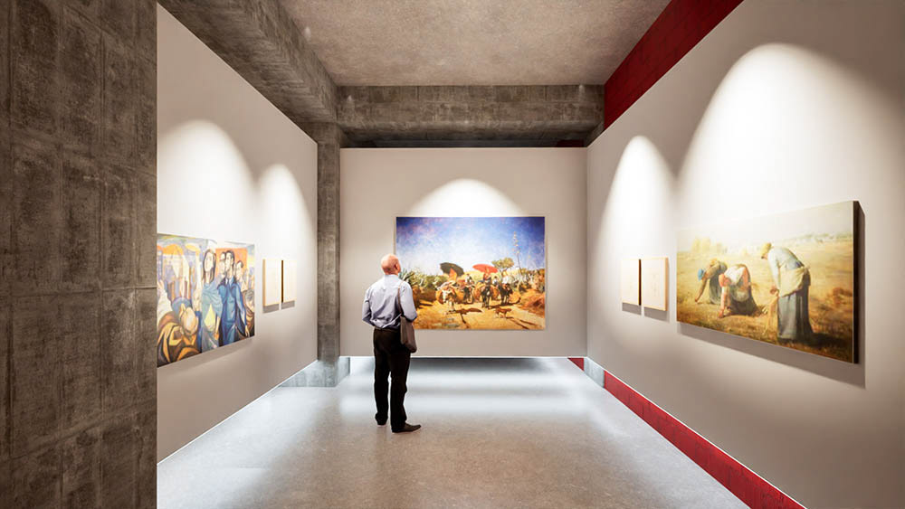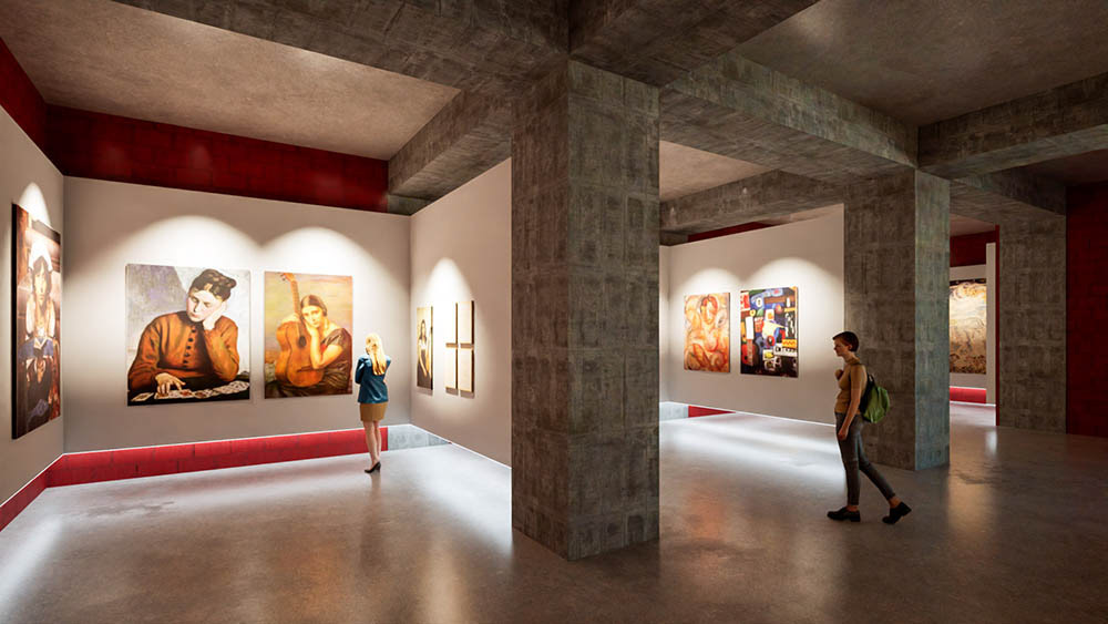 3D simulation for the use of a municipal space as an art gallery in Vila Real de Santo António, Portugal. A realistic virtual representation to show the potential of the space for exhibitions as envisioned by Nerve Design.